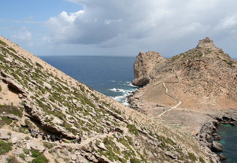A cavallo del ponte di fine maggio (31 V-2 VI) ho accompagnato un allegro gruppo in quel di Marettimo (TP). marettimo è la più selvaggia e forse la più bella delle Egadi, l'arcipelago che si trova a pochi km a est di Trapani. Secondo alcuni autori Marettimo (dall'abbondanza di timo presente sull'isola) coincideva con la mitica Itaca, la terra di Ulisse, ma miti e preferenze personali a parte marettimo è davvero un gioiello naturalistico. Separatasi dalla terraferma circa 600 mila anni fa, quindi ben prima di Levanzo e Favignana, è stata risparmiata dal cancro turistico chiamato da alcuni sviluppo territoriale, soprattutto per le sue coste aspre e frastagliate, con pareti verticali a picco che impediscono l'insediarsi di abitazioni e per la rarità di punti di balneazione. Non è un caso quindi che la foca monaca sia tornata recentemente a sguazzare fra queste splendide acque dopo che era scomparsa da decenni. L'isola è battuta da diversi sentieri, tutti molto belli e devo dire ben curati che ci hanno permesso delle splendide passeggiate.