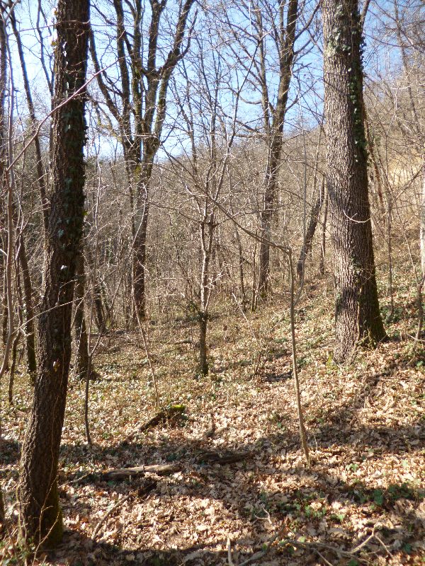 Qui l'ambiente cambia subito, diventa più xerico e di conseguenza si incontrano altre essenze, in prevalenza roverella e degli alberi dalla corteccia liscissima e biancastra che purtroppo non conosco ( vedi foto)