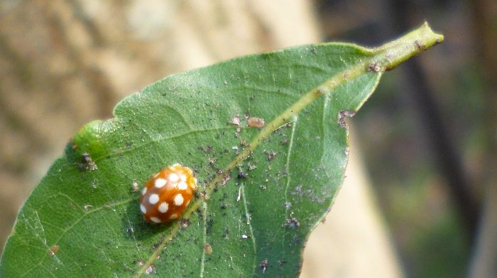 Un'enorme pianta di alloro! sotto ci trovo solo un bolo interessante, su una delle sue foglie invece una simpatica coccinella.