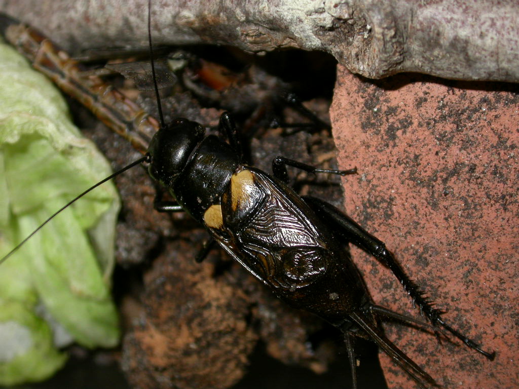 Un maschio di Gryllus bimaculatus (?), rinvenuto sotto pietra ai margini del torrente, in mezzo a svariati carabidi: