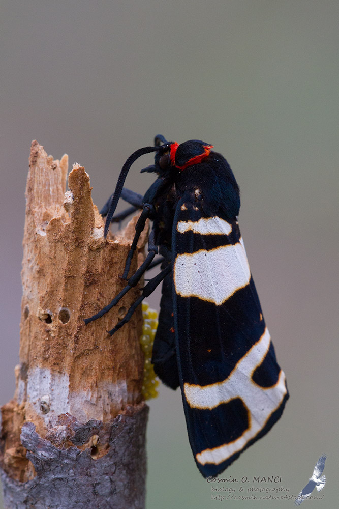 Arctia festiva (femmina, deponendo)