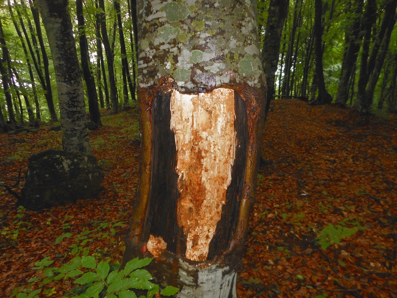 Ad ogni modo raggiungiamo l'Ossa, e ci inoltriamo nella faggeta sotto un acqua piuttosto insistente. Questo l'ambiente: