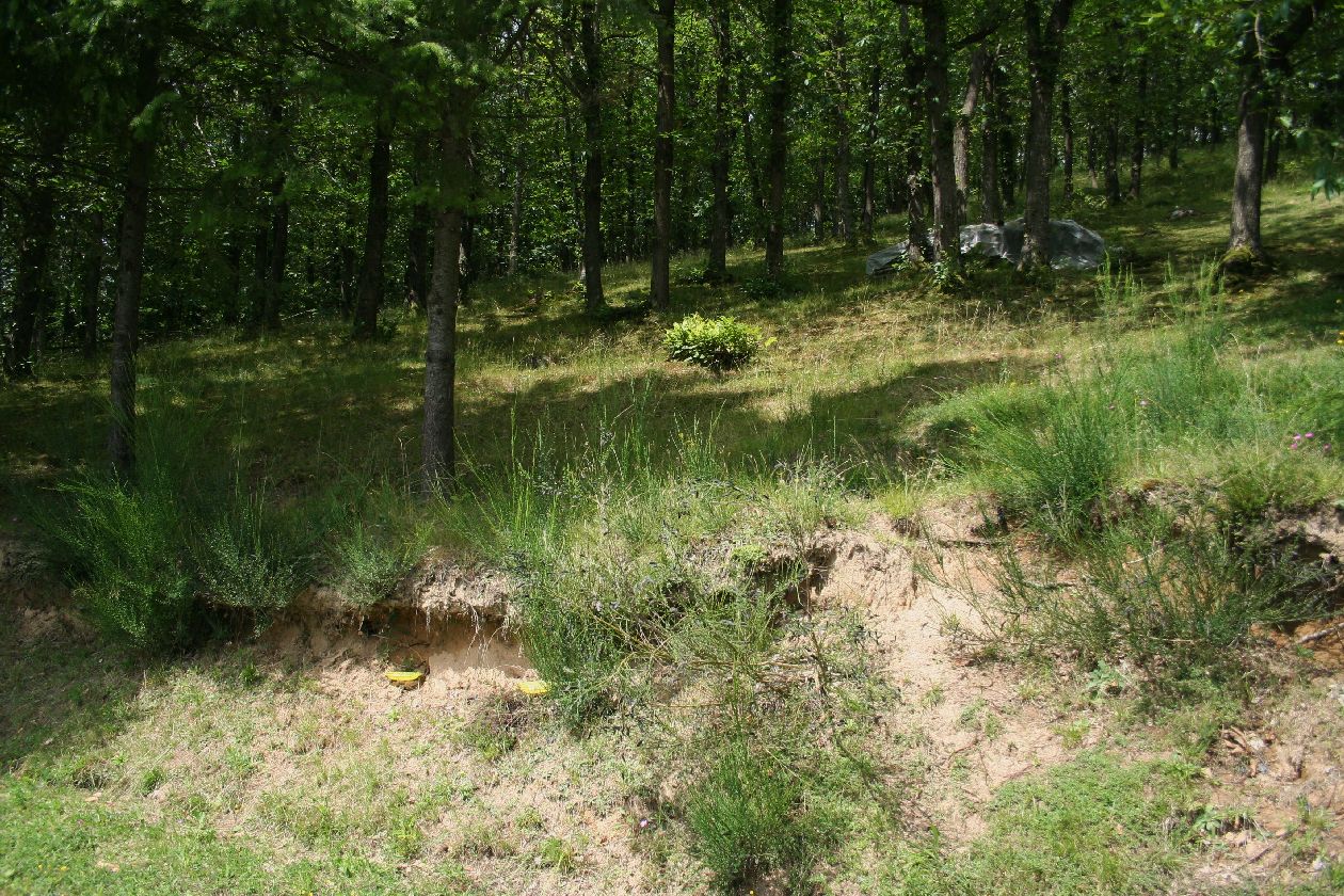Nel mese di luglio, il mio pargolo ha raggiunto i nonni a Castel D'Aiano, un ameno paesino sui primi rilievi dell'Appennino bolognese che negli ultimi anni ho cominciato ad investigare con notevoli soddisfazioni Ovviamente nei vari fine settimana di luglio, ho sempre raggiunto il figliolo per passare un po' di tempo in tranquillità ed al fresco.....peccato che in questa pazza estate, più del fresco, ci sia stato un vero freddo invernale con punte negative di 10 gradi scarsi . Comunque ogni tanto brillava pure il sole, così ho piazzato alcuni piattini gialli in una bella vallecola aperta, in mezzo a vasti castagneti e li piazzavo al sabato mattina per poi ritirarli la domenica pomeriggio.... Di robina ne è arrivata, non ho idea di cosa sia, ma almeno per illustrarne la varietà ho pensato di presentarvi le bestiole che mi apparivano diverse.....in massima parte si tratta di crisidi, ma vi sono anche altre "vespe". Ecco il posto.... |
