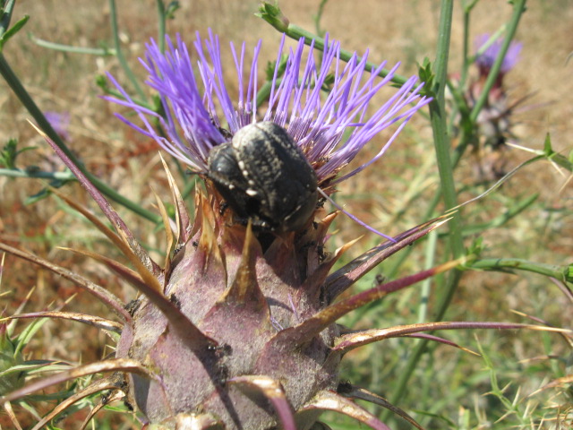 Nel pomeriggio, dopo pranzo, ritorno ad esplorare un'altra zona di Piano d'Olmo, e qui ho la sorpresa più inaspettata della giornata: sullo stesso carciofino selvatico trovo Aethiessa squamosa (Gory et Percheron, 1833) e, udite udite, la rarissima Protaetia (Netocia) squamosa squamosa (Lefebvre, 1827) !