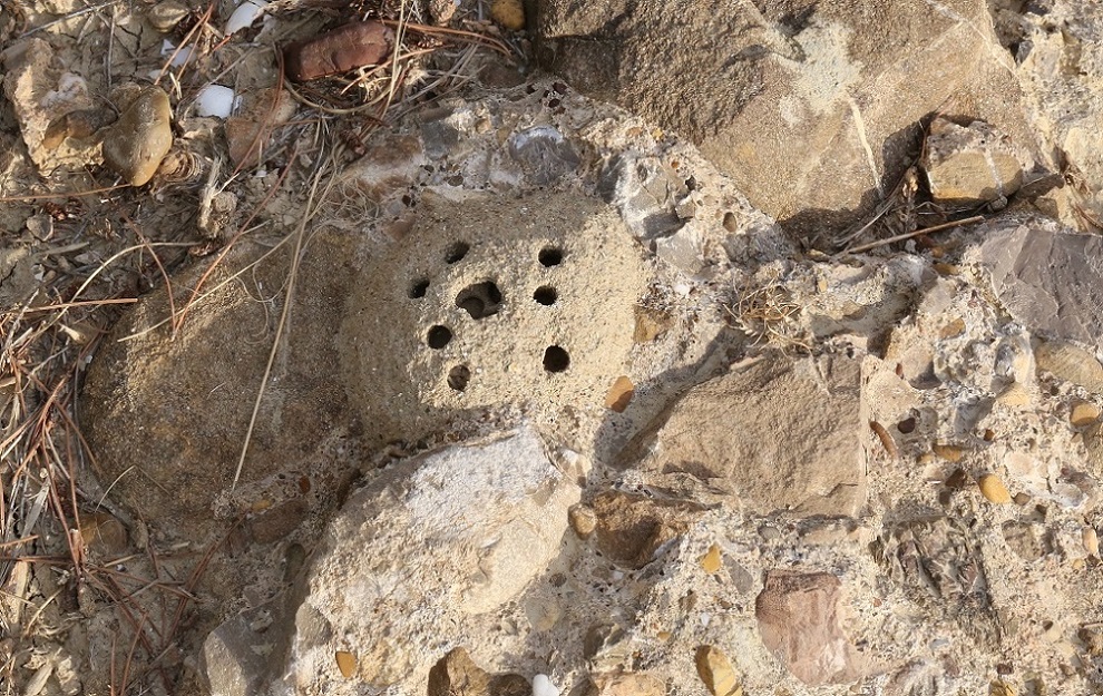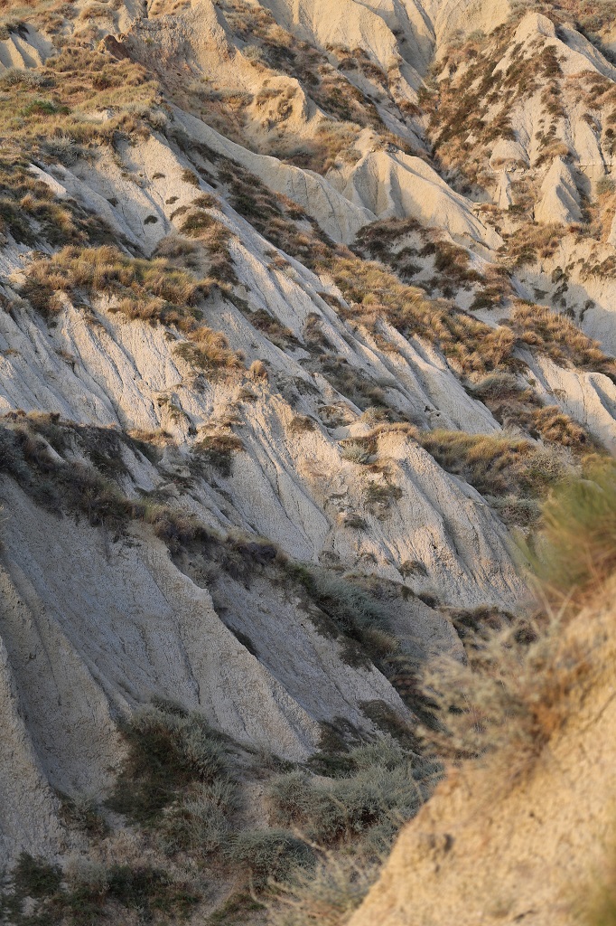 Ci troviamo su un terrazzo marino del Quaternario, composto da argilla, arenaria, e conglomerati, modellato in questa forma nel corso dei millenni dagli agenti atmosferici. Eravamo esattamente alla base di questo calanco.