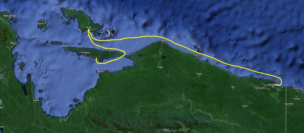 La nostra rotta verso Biak e quindi Yapen