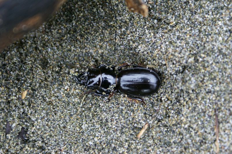 e diverse larve presumibilmente di Dorcus parallelipipedus (Linnaeus, 1758) che banchettavano tra sabbia e legno spiaggiato.