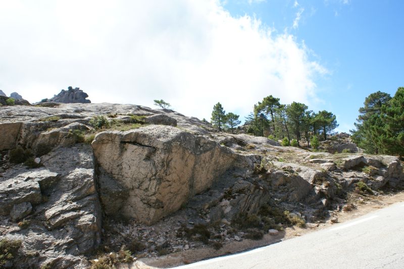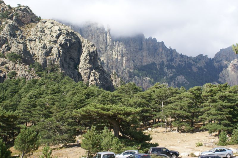 purtroppo sono arrivato tardi … Tornando verso casa ci siamo fermati a Col de Bavella, altitudine 1200 metri sul livello del mare, località con maestosi pini larici (Pinus nigra subsp. laricio, var corsicana) scolpiti dal vento come giganteschi bonsai.