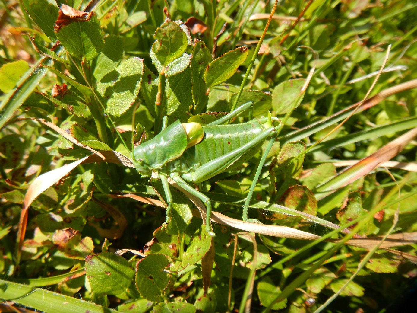 Ad un certo punto sento un canto inconfondibile, ma che sul momento non riesco ad associare a nessuna specie presente in zona. Mi avvicino sempre di più, e nel frattempo dico tra me e me: sarà davvero un Polysarcus? Sì! :hp: :hp: :hp: Ecco lì che zampetta, ed al contempo canticchia nonostante sia a pochi centimetri da lui. E' il più grande Phaneropteridae italiano e l'unico Ortottero italiano a cantare mentre si sposta. La cosa più interessante è che non compare nella lista di Pedroni & Buzzetti (2013).