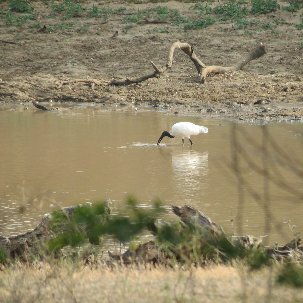 La vegetazione nel Parco di Yala è piuttosto varia; sono presenti estese praterie, in questa stagione decisamente aride, ma anche lembi di boscaglia più o meno fitta. Molto frequenti i pavoni – Pavo cristatus Linnaeus, 1758 – per niente impauriti dai coccodrilli. La specie è originaria dell’India ed è stata portata in Europa dai Romani. Uno degli uccelli più vistosi a Yala, l’Ibis testanera – Threskiornis melanocephalus (Latham, 1790).