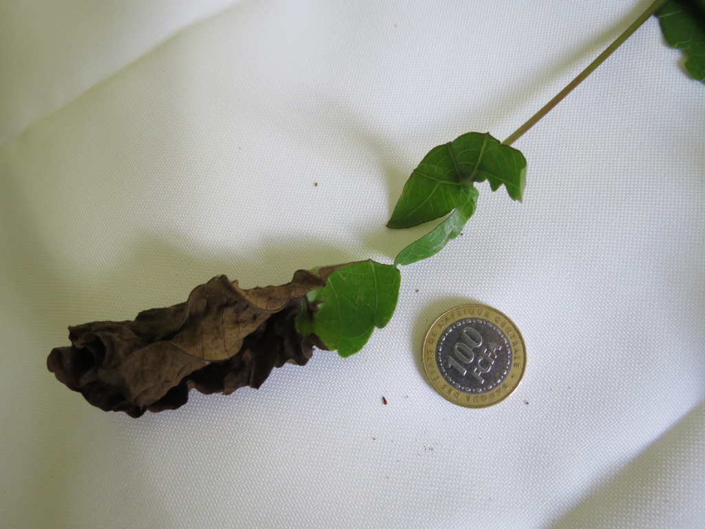 Dalla prima immagine è evidente il modello di taglio (figura k della tabella di Sawada), caratteristico delle specie di Attelabidae appartenenti al genere Euops. Nell'immagine in dettaglio è evidenziato il piccolo sigaro: dimensioni ridotte, dato che le specie in questione sono decisamente piccole (almeno quelle africane). Ho provato a conservare il sigaro, nella speranza di ottenere l'adulto, ma la cosa non è riuscita. Per concludere questa parte, due note: durante la spedizione, nonostante li abbia cercati con ostinazione, non ho raccolto nessun esemplare di Euops; dalle poche notizie che si hanno, le specie africane di questo genere sono tutt'altro che frequenti.