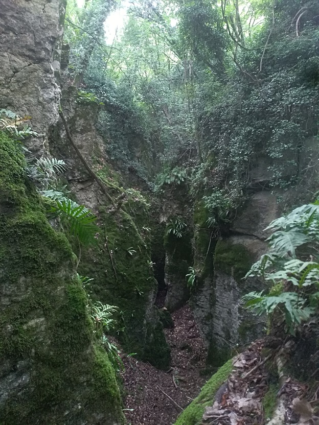 Abbiamo prima fatto una capatina nelle Spurghe vere e proprie, un insieme di cavità e angusti canaloni in parte percorribili che si aprono nella roccia calcarea, umidi e pieni di felci. Un ambiente che si rivela sempre molto suggestivo, vagamente tropicale e primordiale. A vista non vi abbiamo preso nulla, ma potrebbe essere un buon posto per vagliare e trappolare.