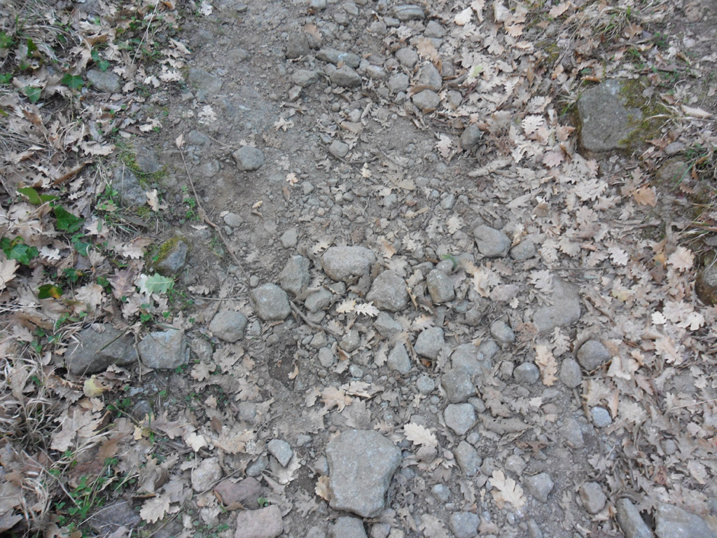 A volte sui lati del sentiero ci sono dei canaletti in cui si accumulano foglie e sassi.