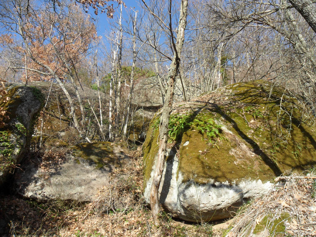 Continuando per il sentiero diventano sempre più comuni grossi massi come questo