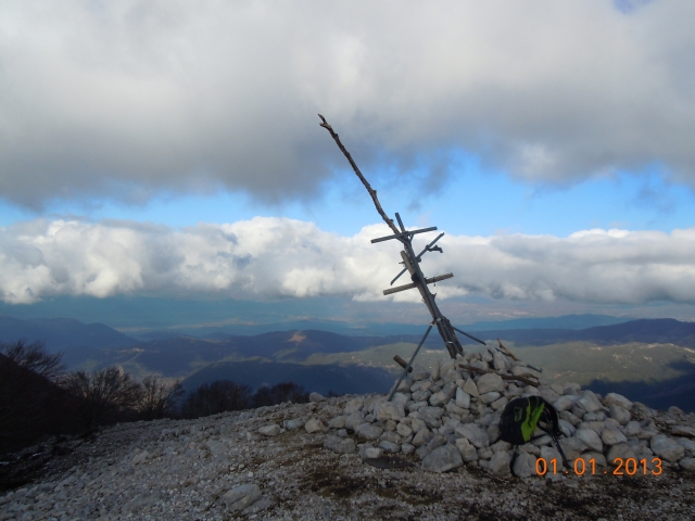 Così, me ne salgo in vetta per vedere di fotografare nel frattempo un po' di panorami per i mei colleghi trascinati lo scorso anno nello stesso posto sempre con lo stesso scopo... peccato che fosse una giornata piovosa-ventosa e gia' ci andò bene che riuscissimo a tornarcene a casa incolumi....