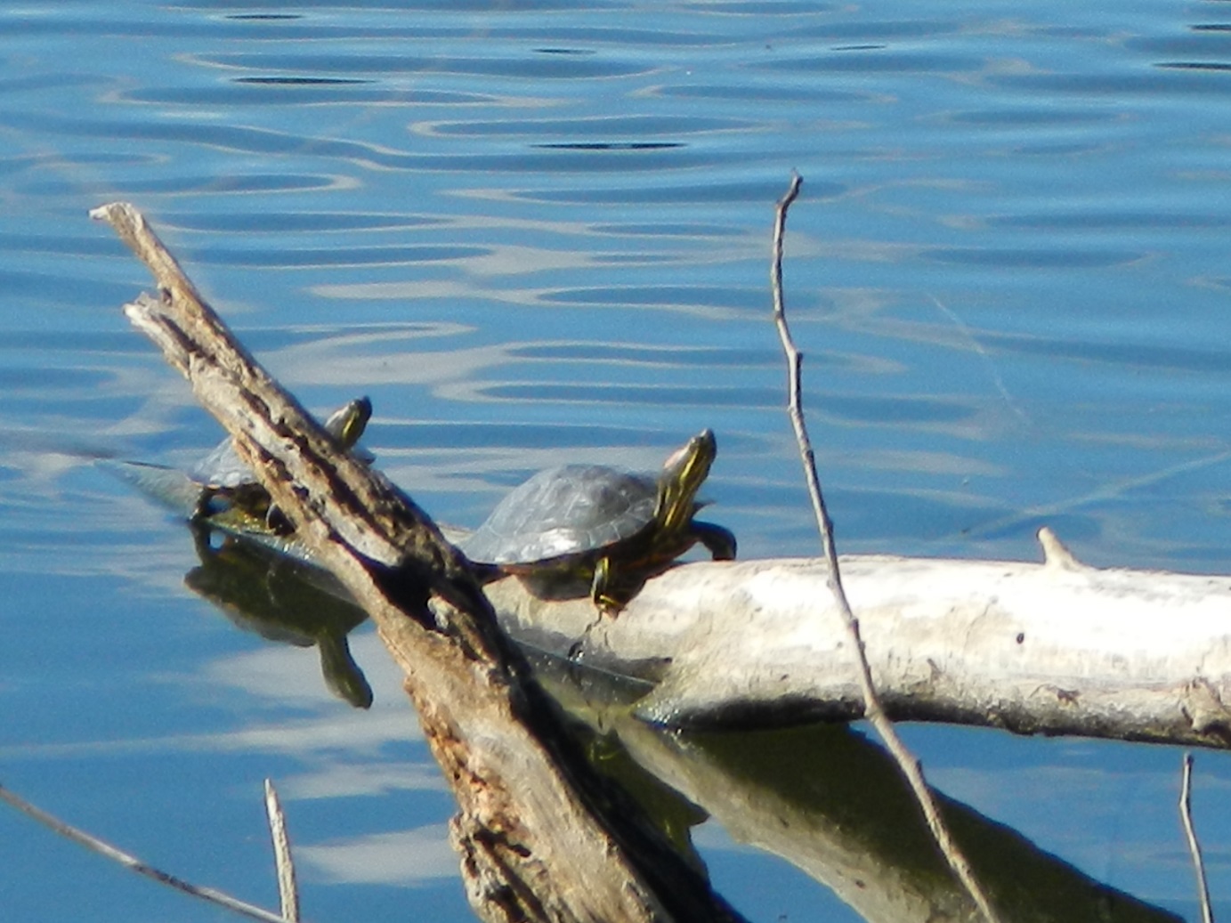 Ci affacciamo da una delle postazioni ed ecco due Trachemys scripta scripta.