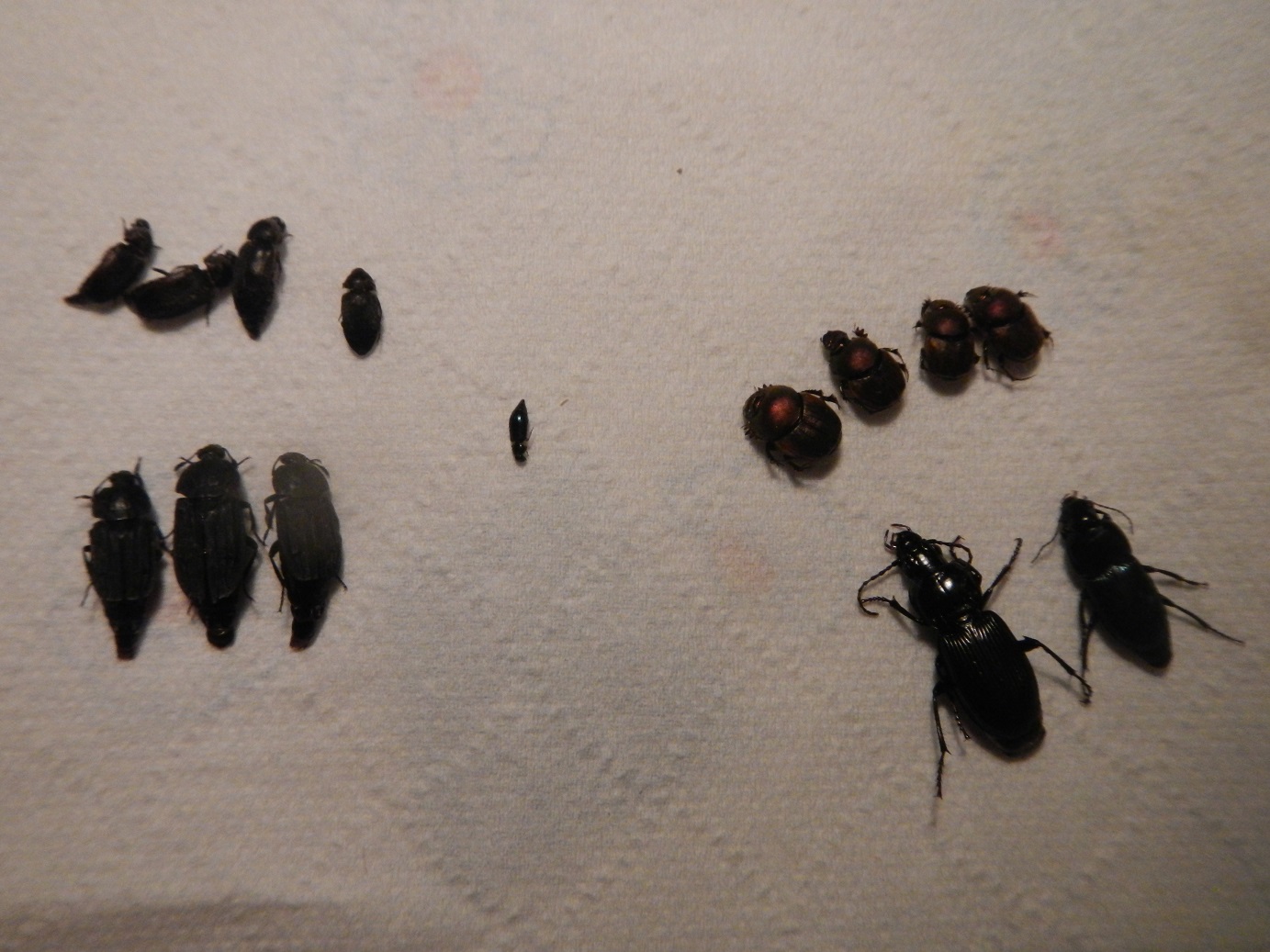 Dopo aver sistemato le trappole vado a ricontrollare i due pennuti morti. Trovo altri Onthophagus (Palaeonthophagus) coenobita, una Necrobia rufibes, altri Thanatophilus rugosus e uno Pterostichino.