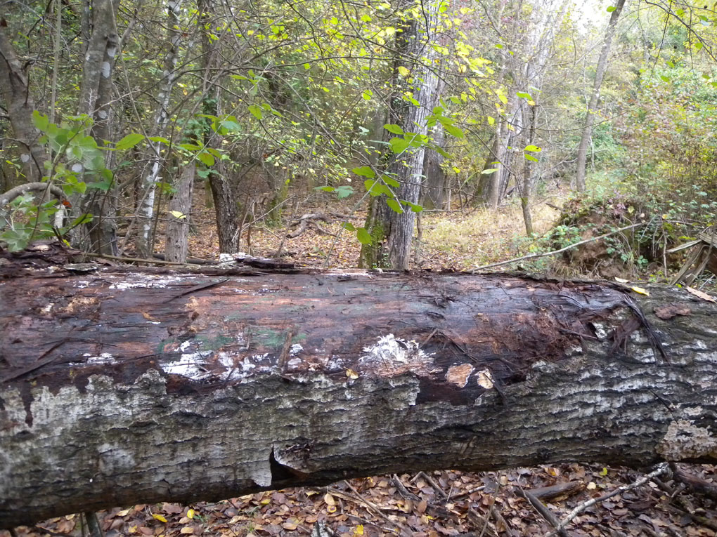Oggi pomeriggio avevo intenzione di tornare a scortecciare ; sperando di trovare qualcosa di nuovo ho cambiato tipo di pianta e località.Mi ricordavo di aver visto un grosso pioppo abbattuto e sono andato sul posto.Siamo comunque anche qui in ambiente di macchia mediterranea praticamente sul livello del mare.