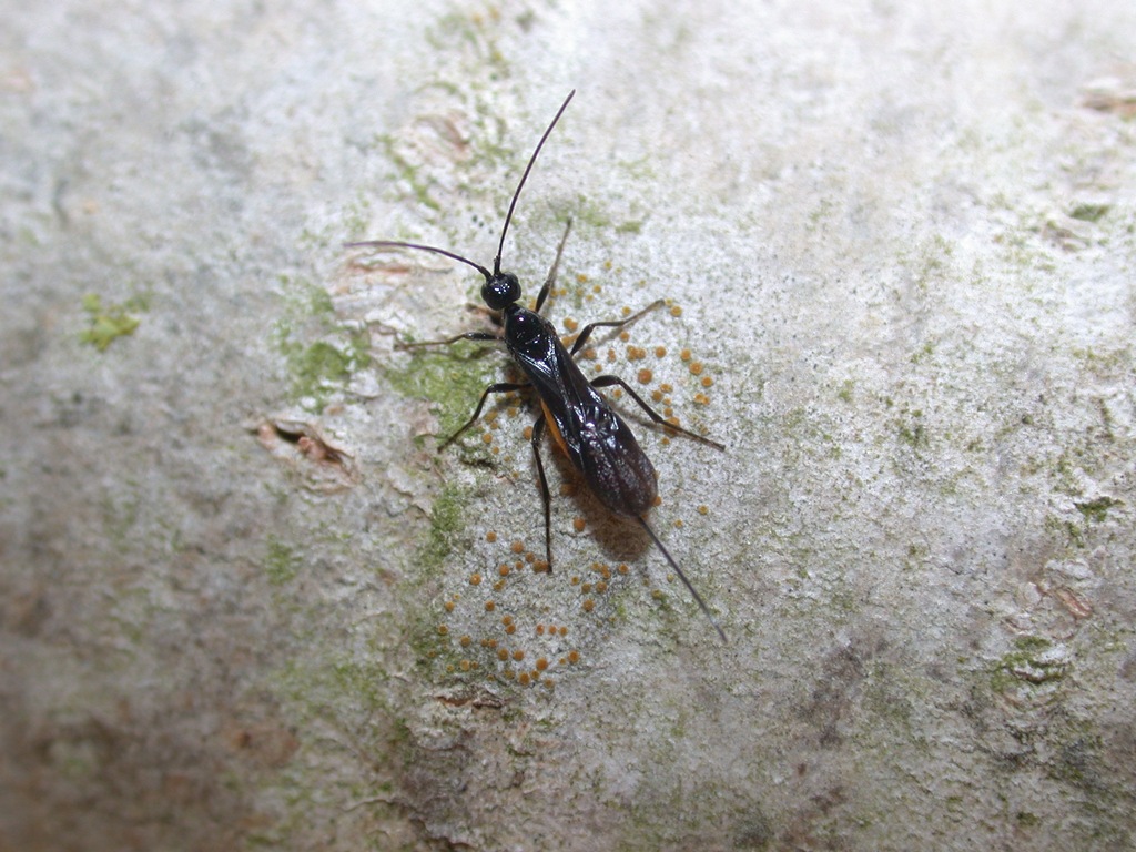 interessante, grazie Maurizio! Chissà se gli esperti riusciranno a confermarne la specie? Riguardo ai numerosi moscerini come quello in foto foto che vagavano come pazzi sul tronco, si può ipotizzare cosa stessero facendo?