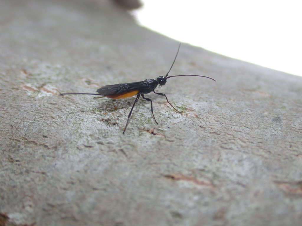 Di queste specie, l'unica che sono riuscito a fotografare (le mie prime foto di insetti in natura!  ) è quella più "tranquilla"  : l'Aegomorphus clavipes. Questa specie, a differenza dei Buprestidi di cui ho parlato, stava quasi esclusivamente nella parte di tronco caduta, orizzontale.. E sempre e solo nella parte all'ombra. La tipica posizione, orizzontale e all'ombra: Mimetismo quasi perfetto...  Spesso si vedevano degli esemplari che incidevano la corteccia con le mandibole... Se ne nutrono, o magari creavano incisioni in cui deporre le uova?  Altri insetti che si vedevano svolazzare molto numerosi sul tronco, erano un dittero (che sinceramente non ho capito perchè fosse attratto dall'albero...  ) e un imenottero, che ognitanto si vedeva inserire l'ovopositore nella corteccia... Poveri xilofagi..!  (il dittero non sono proprio riuscito a fotografarlo bene... non stavano mai fermi!!  ) (l'imenottero invece è venuto meglio) Continua...