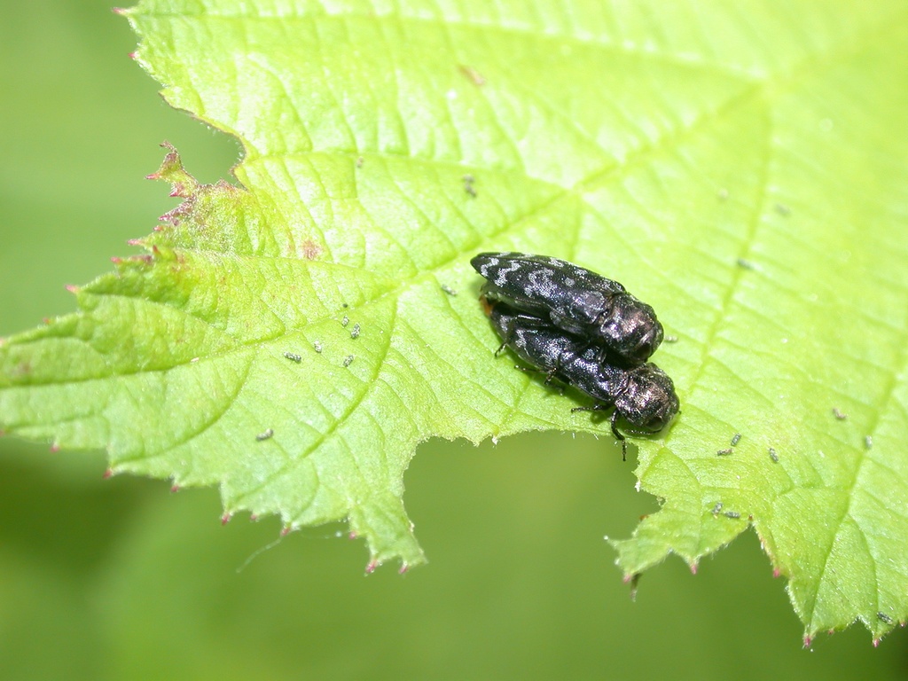 Proseguo... Avendo rinunciato a fotografare i buprestidi  , mi sono spostato ad osservare la vegetazione poco fuori dalla pineta... Gli insetti non mancavano, ma le foto più o meno riuscite sono poche... Devo prenderci la mano: non capivo come mettere a fuoco il soggetto, dato che la macchina metteva automaticamente a fuoco lo sfondo! Comunque... Rimanendo in tema di pioppi... Sulle foglie delle piante giovani, erano comuni queste Chrysomela (populi?) Poi mi sono dedicato ai rovi lungo un fosso... Una neanide di cavalletta... Le foto fanno pietà, ma la metto lo stesso... La trovo così carina!  Un simpatico bruco... Con un mimetismo tanto geniale quanto disgustoso!  Ovviamente non mancavano gli onnipresenti Coraebus rubi!