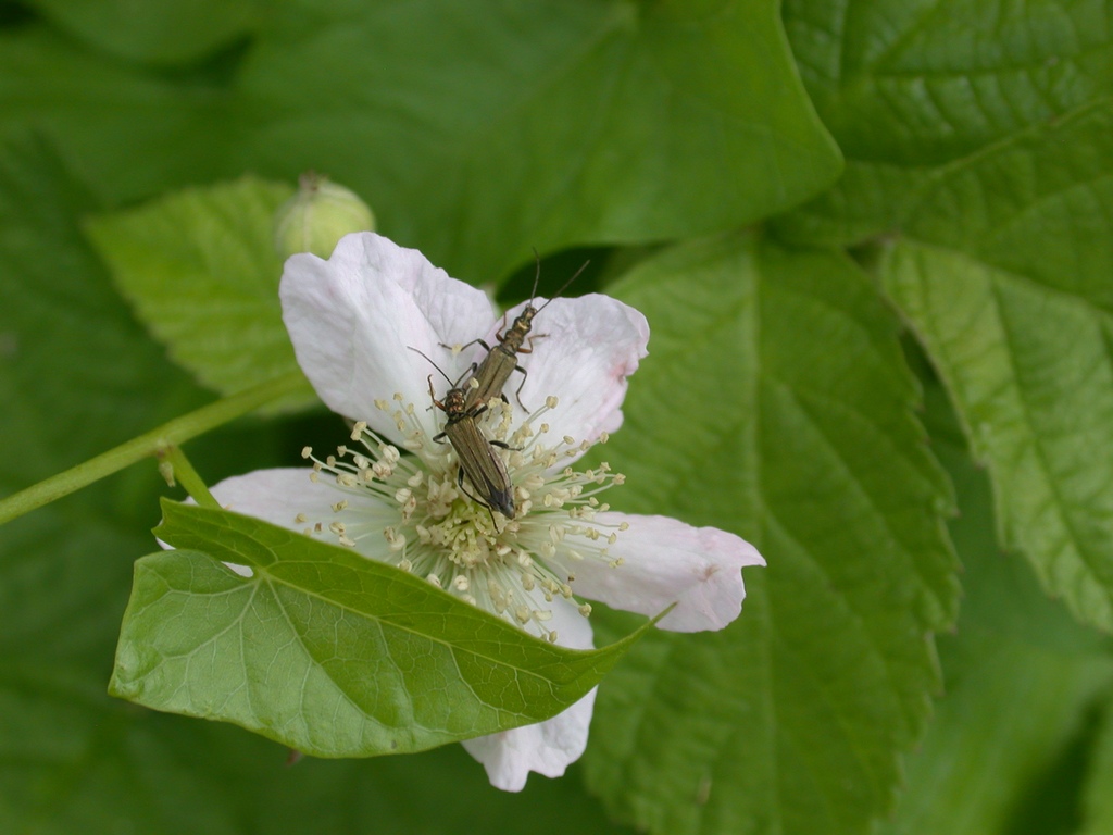 Anche i fiori erano piuttosto frequentati (ma le poche foto che sono riuscito a fare non possono certo renderne l'idea!) Un mordellide... Femmine di Oedemera (un maschio si intravvede nella foto precedente) Due compagni di merenda  Oxythirea funesta e Stictoleptura cordigera. Gli ultimi due soggetti sono fotografati all'interno dell'aspiratore... Trichodes apiarius Chicca finale: Strangalia attenuata!  E' la prima (e unica) che ho preso in questa pineta... In genere le trovo nel bosco della Fasanara!  Per ora è tutto... Spero col tempo di migliorare con le foto... Queste erano le primissime! PS: per Maurizio... Si, i ditteri si comportavano proprio così! Non avevo proprio pensato a rituali di corteggiamento!  Grazie mille, anche per la conferma della C. populi!