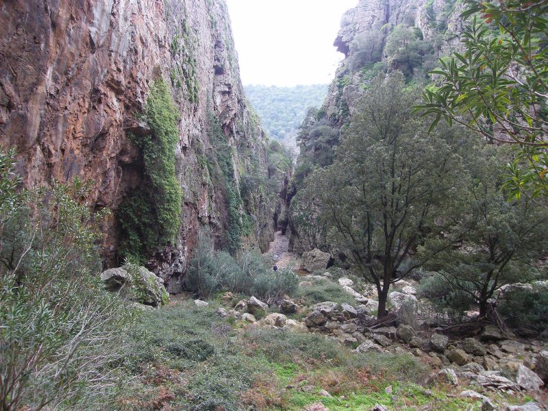 Ieri mattina (11.I.2014) guidati dall'amico Davide Cillo, esperto conoscitore del territorio sardo, io e Adriana Lecis, formidabile malacologa e entomologa, siamo andati alla Gola di Is Cioffus dove abbiamo passato alcune ore di ricerche entomologiche. Si tratta di una affascinante e suggestiva gola scavata dal rio omonimo (Rio Is Cioffus) con pareti pressochè verticali alte centinaia di metri nei monti del territorio comunale di Sarroch a una trentina di chilometri da Cagliari.