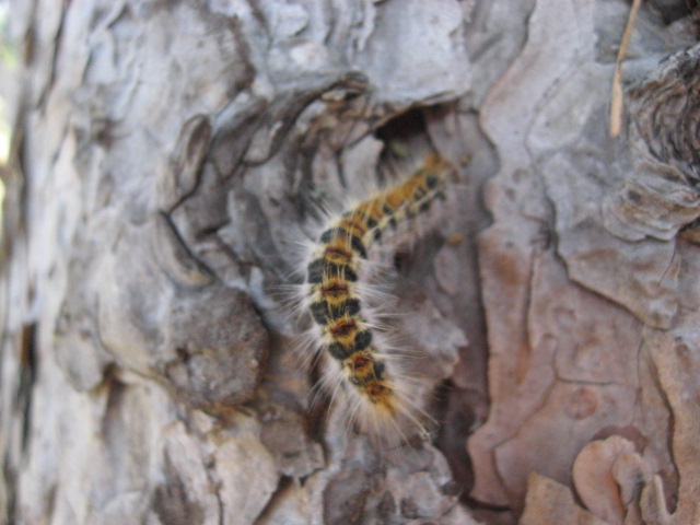 Onnipresenti invece erano le processionarie (Thaumetopoea pityocampa): sui pini vivi, su quelli abbattuti, sul terreno, nel sottobosco, fra le radici degli alberi, in quantità veramente impressionante.