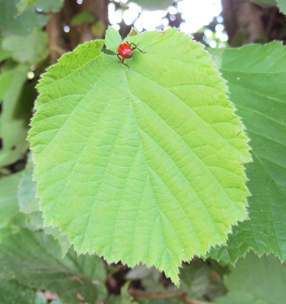 Sono consapevole che già altre volte vi ho proposto qualcosa di simile, ma ... non so resistere: quando mi capita di assistere a tutte le fasi della costruzione di un barilotto rimango talmente affascinato da rimanere più di un'ora fermo ad osservare (e già che ci sono, documento il tutto). In realtà, per la nota legge di Murphy, anche questa volta non avevo con me la reflex, ma solo la bridge, quindi la qualità delle immagini è scarsa. Allora. Bella mattinata di sole, bosco di latifoglie miste a est del Lago di Fimon. Sto raccogliendo barilotti di Apoderus per allevamento e ce ne sono davvero tanti, quasi tutti su nocciolo. Ho già notato anche diversi adulti attivi quando mi capita di sorprendere una femmina che sta iniziando le operazioni: Dopo aver scelto, valutato e misurato la foglia (a tali operazioni questa volta non ho assistito), sta incidendo il lembo fogliare vicino all'inserzione del picciolo con un taglio che parte dal margine sinistro e si arresta in prossimità della nervatura centrale. Questa prima fase dura solo pochi minuti. Ora inizia la fase decisiva: deve ripiegare la foglia facendo sovrapporre le due metà simmetriche rispetto alla nervatura principale. Se considerate le dimensioni della foglia rispetto a quelle dell'insetto, non è affatto facile. Per rendere il compito più agevole, la femmina percorre più volte la foglia mordendola in zone strategiche per rallentare l'afflusso della linfa. Dopo pochi minuti l'effetto è già visibile: il tessuto fogliare non è più turgido come in partenza, ma decisamente più afflosciato e quindi più facile da lavorare. A questo punto si posiziona a cavallo della nervatura centrale e, usando tutte e sei le zampe, "chiude" le due metà sovrapponendole.