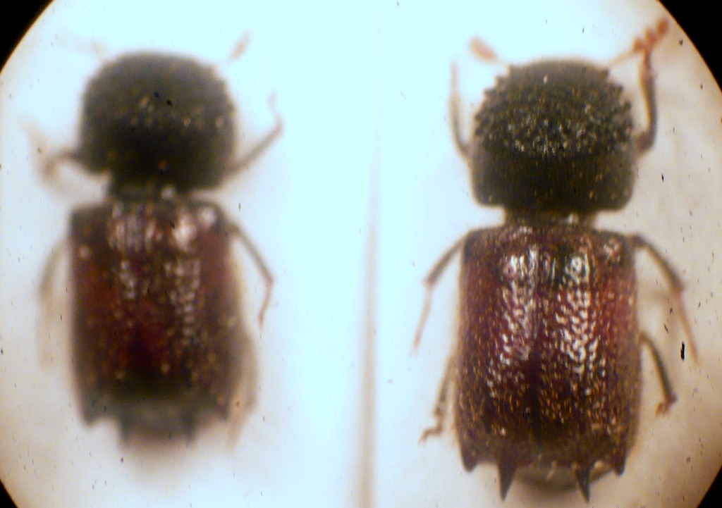 La larva sicuramente non c'entra nulla coi Sinoxylon, che dovrebbero avere la solita larva tipo Bostrichidae, corta, tozza, ripiegata a C o a J, vagamente simile a quella di uno scarabeide, ma con la parte anteriore molto ingrossata.