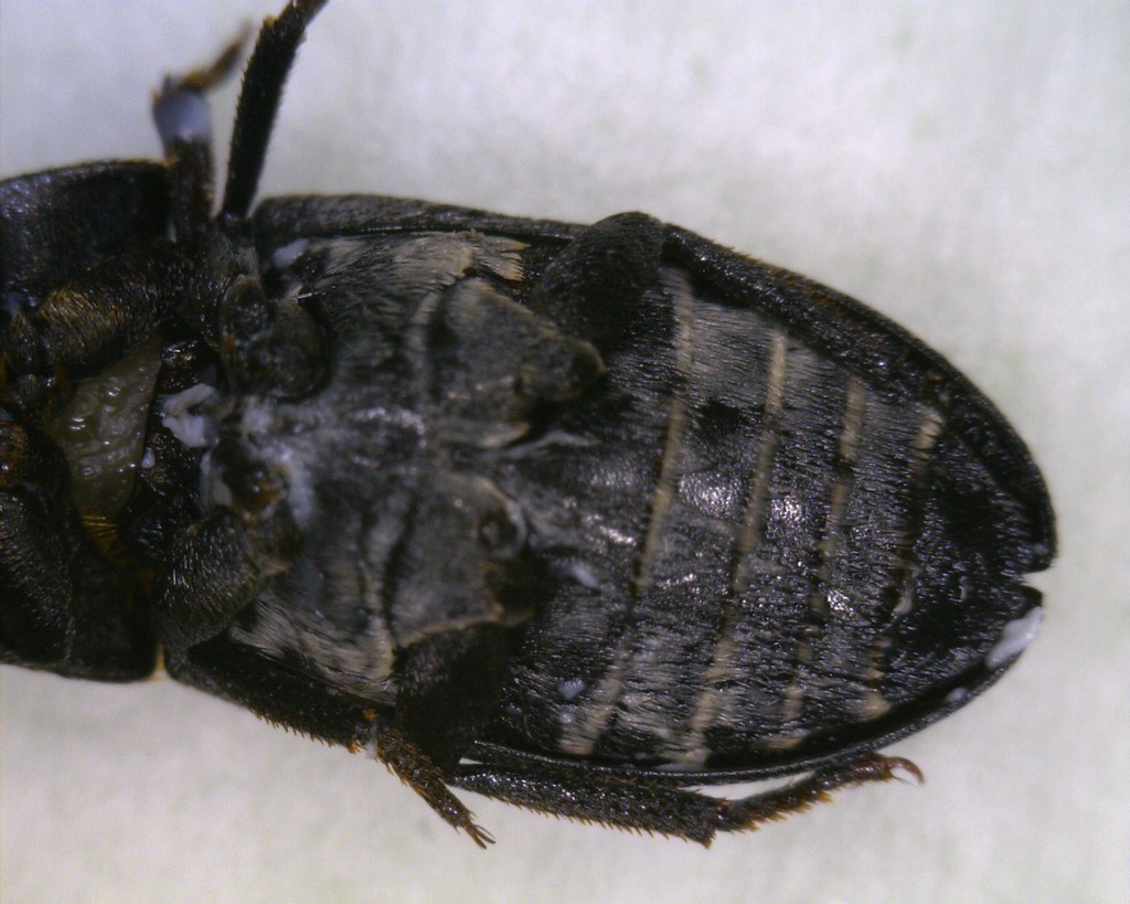 Il problema è che è una delle specie ad addome con peli bianchi o crema e macchie nere ai lati degli sterniti ma appare nero forse per untuosità; serve sgrassare l'insetto in acetone per far comparire il disegno addominale e dell'ultimo sternite in particolare, visto che pare una femmina e neppure si può contare sull'edeago. :hi: