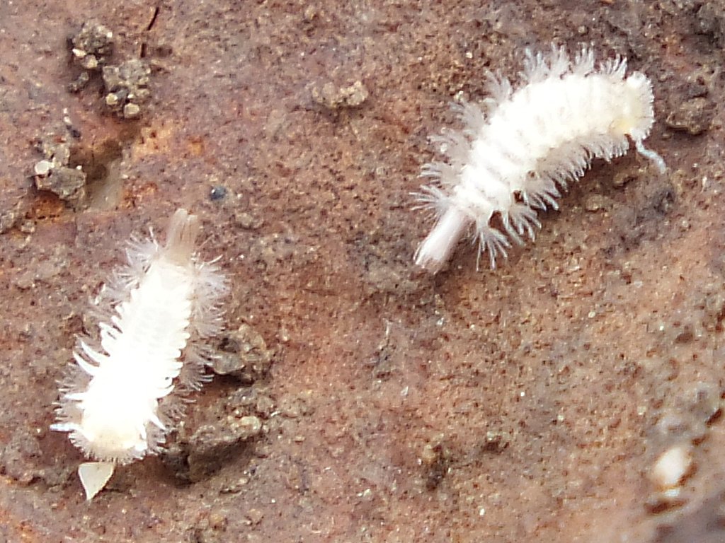 Su questi due non mi azzardo a dire nulla! Presumo siano larve (Omotteri?), ma non ne sono nemmeno troppo sicuro. Tra l'altro la foto è venuta male e si capisce ben poco, nemmeno se hanno 6 zampe o di più! Erano lunghi pochi millimetri, ovviamente sotto una pietra.