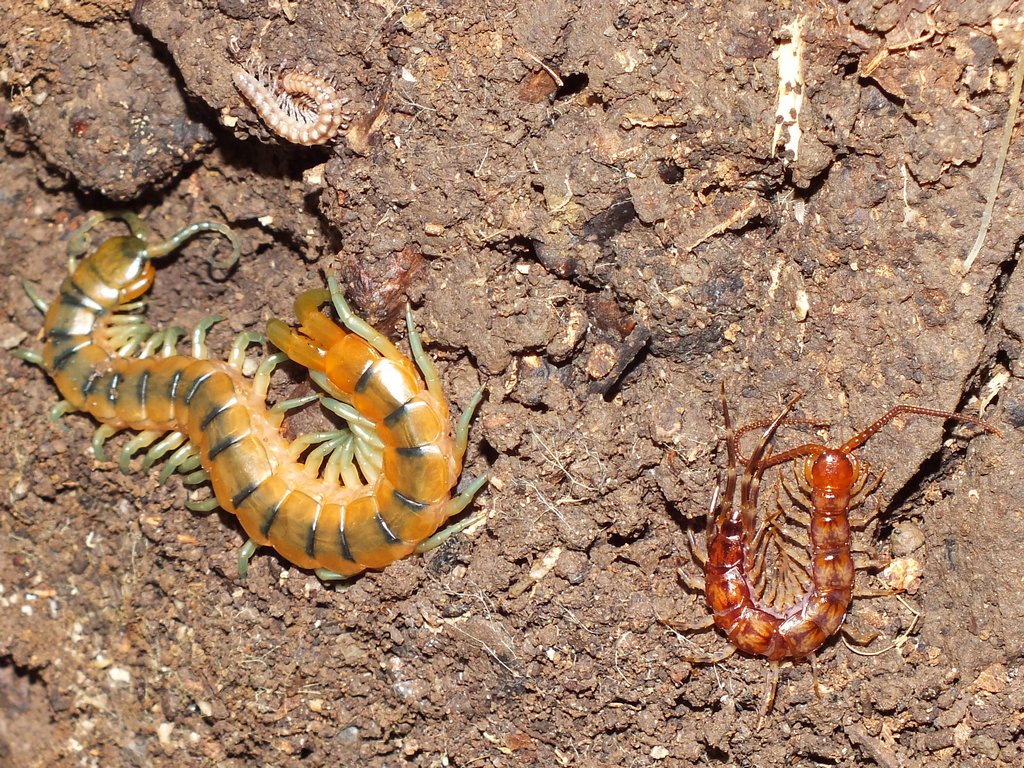 Scolopendra cingulata (Scolopendridae), Eupolybothrus sp. (Lithobiidae) e Polydesmus sp. (Polydesmidae)