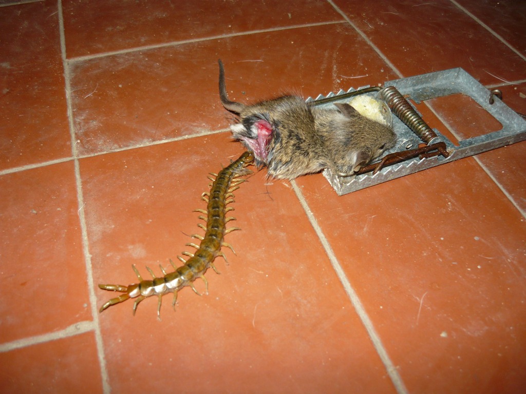 Interessante! Insolito che una Scolopendra cingulata si nutra di un animale già morto. Peraltro, in questo caso, il pelo lo rendeva anche poco riconoscibile come buono da mangiare. Potrebbe averlo attaccato perché si muoveva ancora, ma sarebbe stato un attacco molto temerario; la scolopendra non poteva sapere che il topo era imprigionato. Per me il meccanismo rimane abbastanza misterioso. luigi