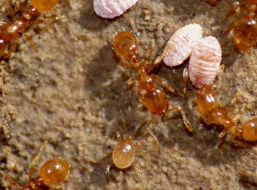 Mi dispiace, ma credo che sia impossibile ritrovare quella pietra tra centinaia; e poi non è detto che ci sia ancora quel formicaio sotto. Le Solenopsis non sono molto frequenti da incontrare. Se mi capitano di nuovo vedrò di raccoglierli; ma tieni presente che mi sono accorto degli acari solo guardando le foto croppate al computer. Inizialmente, avevo inteso documentare solo i coccidi allevati dalle formiche (che peraltro sono lunghe sui 2mm). La vedo dura ..... luigi