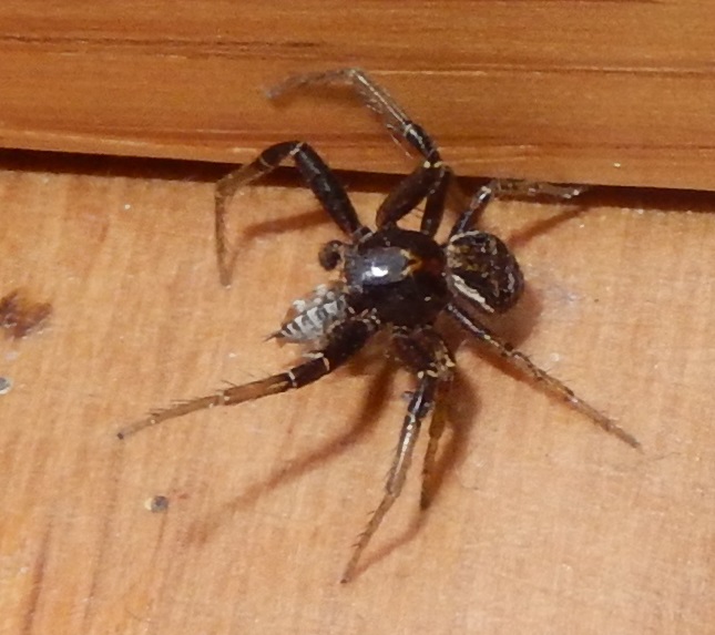 Scena di caccia. La preda sembrerebbe un Anthrenus verbasci. Il predatore purtroppo non si vede benissimo... niente ragnatela, corpo, direi, non più lungo di un cm, in casa. Ipotesi? Grazie e scusate per la qualità della foto.