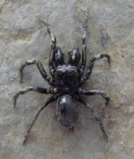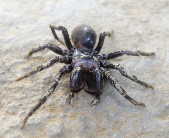 N.B. This spider, despite the enormous chelicerae, is not dangerous. The odd shape is due to its hunting technique --->