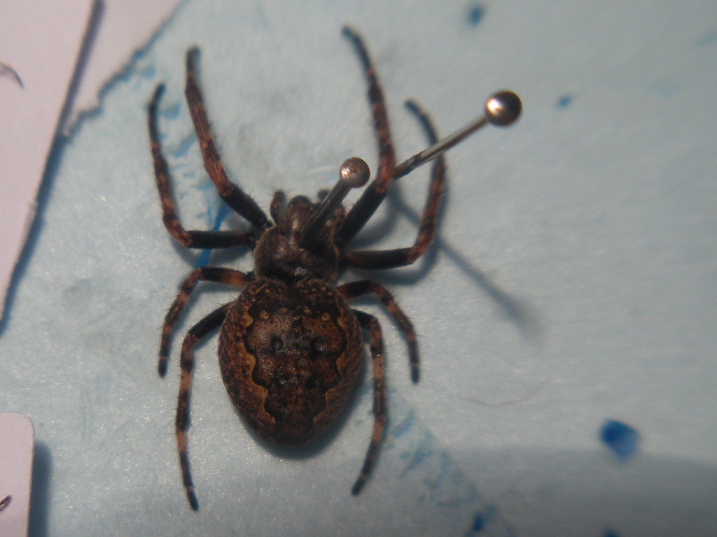 In italia son presenti 2 specie Nuctenea silvicultrix (C.L.Koch, 1835) Nuctenea umbratica (Clerck, 1757) La seconda solitamente è qualche millimetro piu grande e piu scura. N. silvicultrix non dovrebbe superare il centimetro di corpo, N.umbratica arriva ai 15mm. Data la decisa variabilità cromatica di queste specie e non fidandomi molto delle misure come parametro diagnostico, concordo con Luigi sul rimanere al genere. P.S. Ribadisco che spillarli è proprio dannoso. Spesso i caratteri distintivi stanno proprio nella fovea o nelle sigille o nella forma dello sterno. Inoltre per ragni con addome cosi espanso il rischio di marcescenza è notevole e l'addome si rattrappisce deformandosi irrimediabilmente. Meglio l'alcool 80%