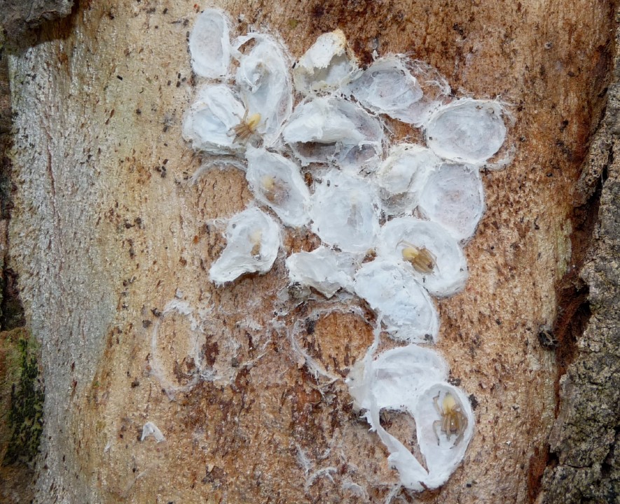 Trovato sotto corteccia di platano all’interno di una capsula sericea.