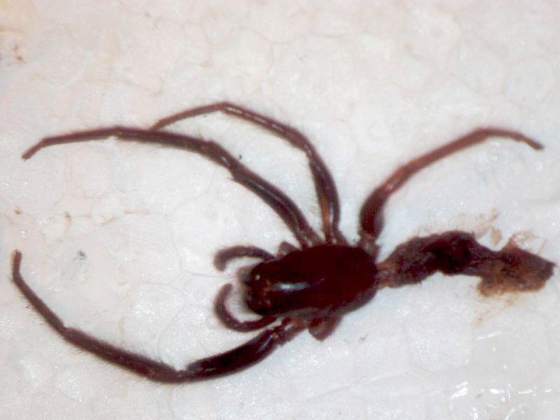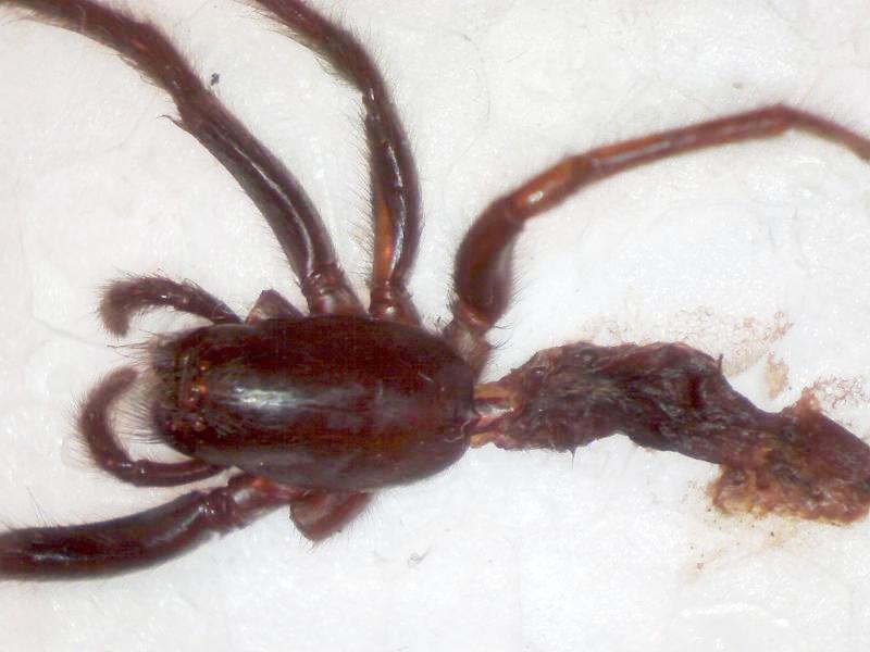 Mi ricorda un Amaurobius sp.. Potrebbe essere stato predato da un altro ragno (per esempio, uno Gnaphosidae), che ne ha mangiato solo l'opistosoma. luigi