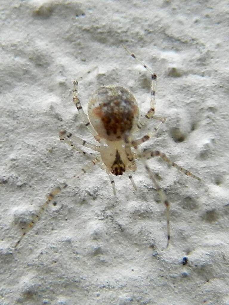 Metellina sp. è un pò più grande, predilige zone umide e riparate, cavità, vegetazione di solito bassa in prossimità dell'acqua.