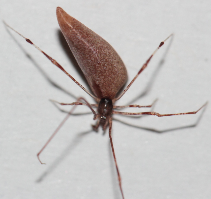 Di solito non mi metto a fotografare anche i ragni, ma questo mi ha davvero colpito, per le dimensioni sproporzionate dell'opistosoma e soprattutto, perchè è quasi impossibilitato a camminare normalmente, in quanto il pesante fardello lo costringe, se messo su una superficie piana, a girare "in tondo"!! Bestia davvero curiosa, qualcuno la conosce?? Se a qualcuno interessa, lo metto il alcool 70%.