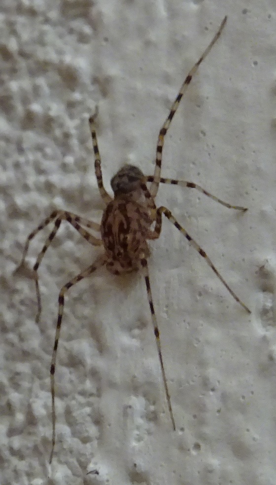 credo sia un'altra vecchia conoscenza di casa mia, Scytodes, forse thoracica. Corpo minuscolo, non più di 5mm. Una confermina? Grazie!