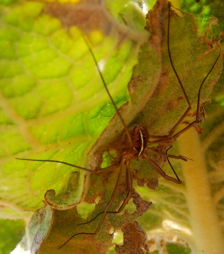su un ventoso pascolo (1800 m.) dove l'erba era stata brucata a zero dalle greggi, c'era una piccola pianta coriacea che svettava, su cui si aggiravano ben tre di questi ragni. Zampe lunghe da ragnatela, ma... niente ragnatele. Corpo circa 1,2 cm. Ho fatto anche altre foto, ma questa è la migliore! Che ne dite?