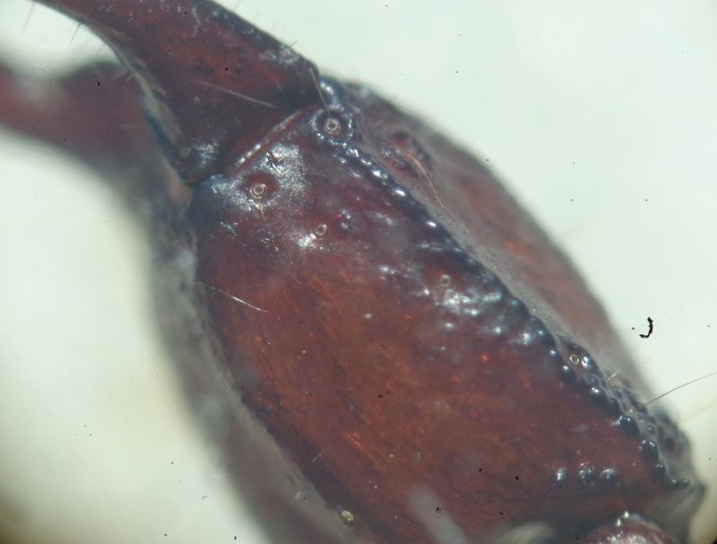 Allego foto anche del 5° articolo del metasoma, anche con dettaglio, quindi dell'esterno della patella, della patella (versus) e della chela (versus). Spero in una conferma opportuna, magari dallo stesso Gioele. :hi:
