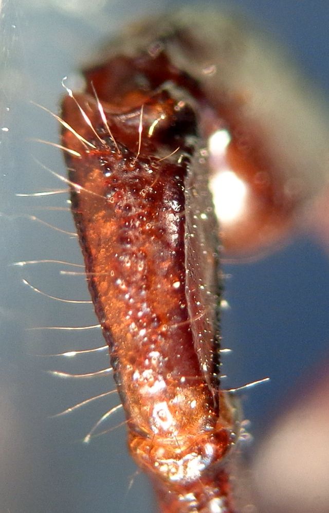 Nel gruppo di E. sicanus si riconosce agevolmente (se nel frattempo il DNA non ha scovato altro) per il numero di tricobotri del versus della patella e della serie eba (quadretto blù in foto), di 11-12 e 5 rispettivamente, mentre in sicanus sono 8-9 e 4 per le analoghe serie. mm 14 escluso metasoma. Due esemplari sotto una pietra in bosco di querce.