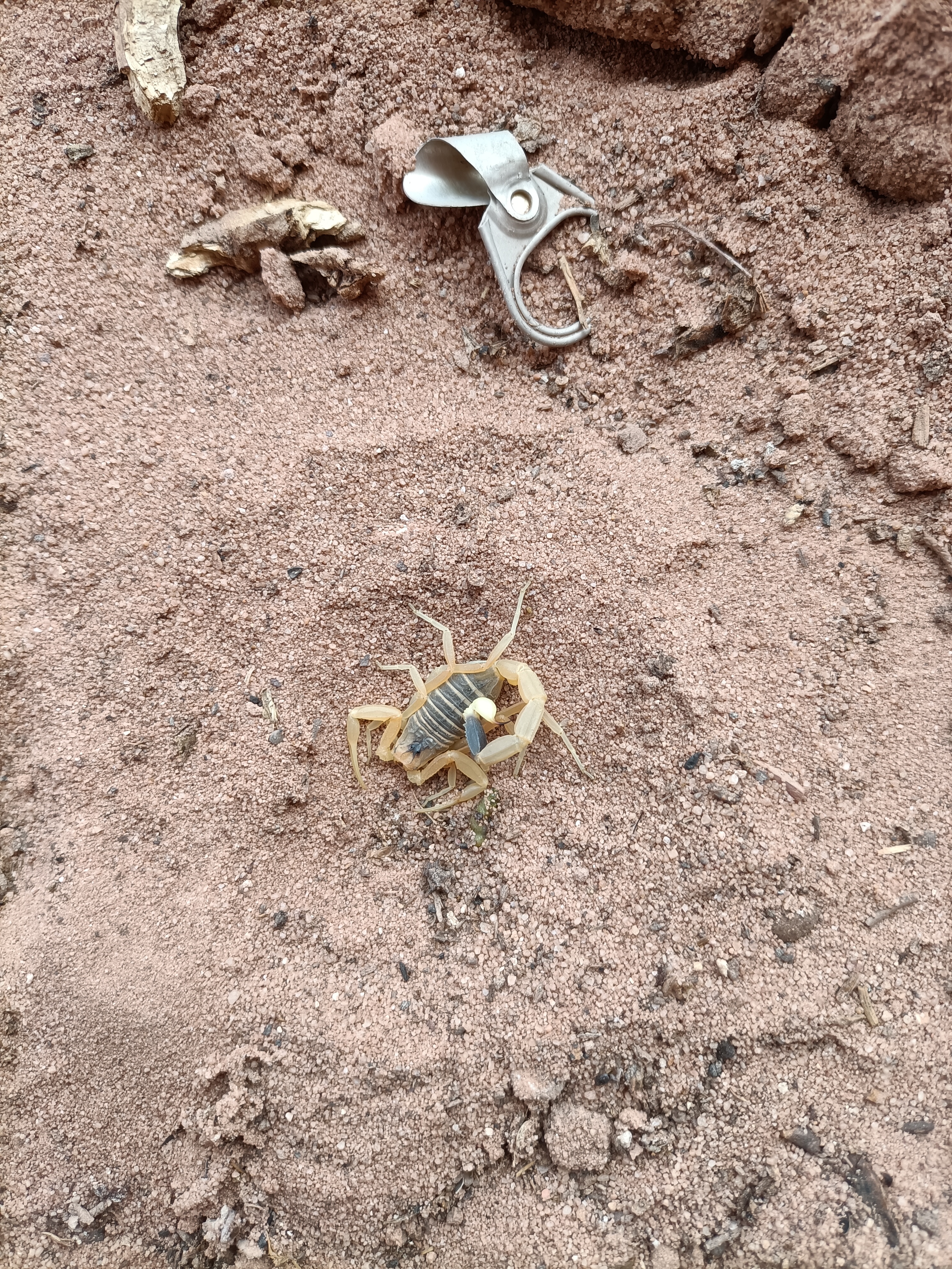 Cercando un pò in internet sembrerebbe del genere Buthacus (non so neanche la famiglia ma ci assomiglia), dovrebbe essere diffuso in Africa e medio oriente quindi ci siamo. Gli scorpioni, come i ragni (quelli grandi, i più piccini sono carini :) ) non li sopporto, quindi non oso immaginare come poteva essere uno di quelli da 6cm