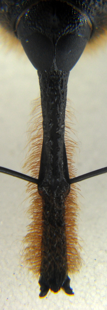 Il carattere più particolare di sicuro è il rostro che presenta una fitta peluria arancione, soprattutto dopo la base delle antenne
