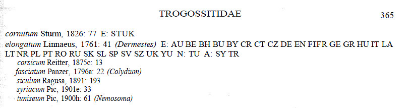 Ivan Löbl & Ales Smetana (eds.) 2007. Catalogue of Palaearctic Coleoptera, Volume 4: Elateroidea, Derodontoidea, Bostrichoidea, Lymexyloidea, Cleroidea and Cucujoidea