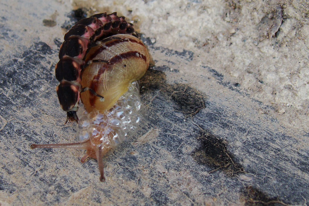 Larva di Lampyris sp. che preda un gasteropode. Ero convinto che fosse L. noctiluca ma cercando altri argomenti sul forum ho scoperto che non può essere in quanto ha quattro macchie sul primo segmento. Qualcuno può identificarla o darmi qualche dritta? Grazie in anticipo ![]() Particolare dell'organo che usa per pulirsi dalla 'bava' della preda e per attaccarsi ad essa durante la predazione. Daniele |